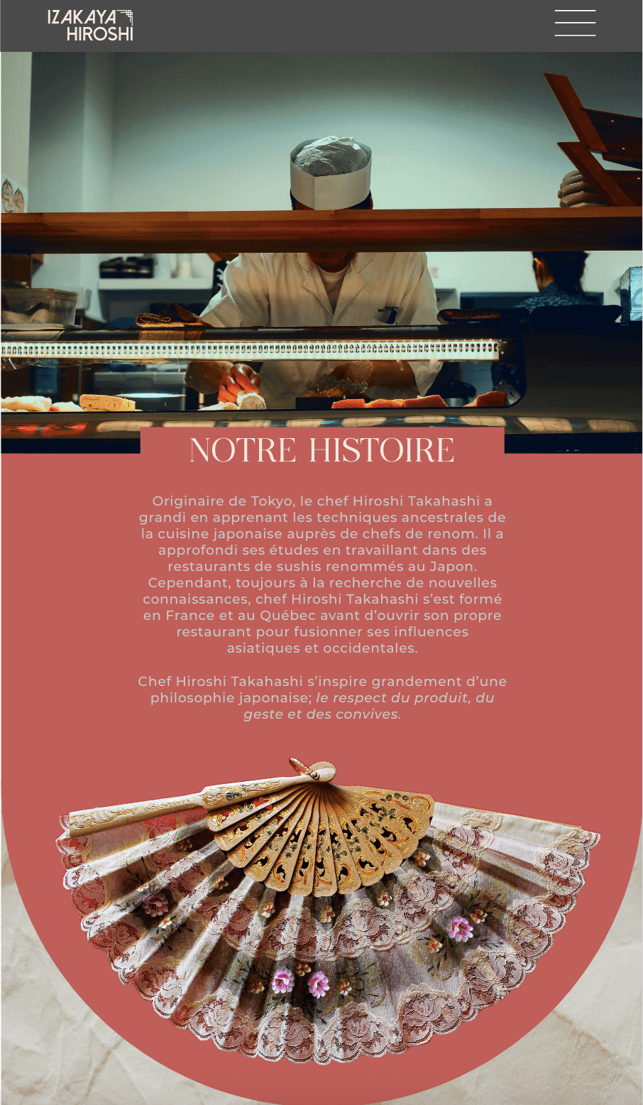 Conception de la maquette UI pour le site web d’un restaurant japonais, puis développement complet en HTML, CSS, JavaScript et PHP. Le projet visait à créer une interface moderne et immersive, inspirée de l’esthétique japonaise, tout en assurant une navigation fluide et fonctionnelle.